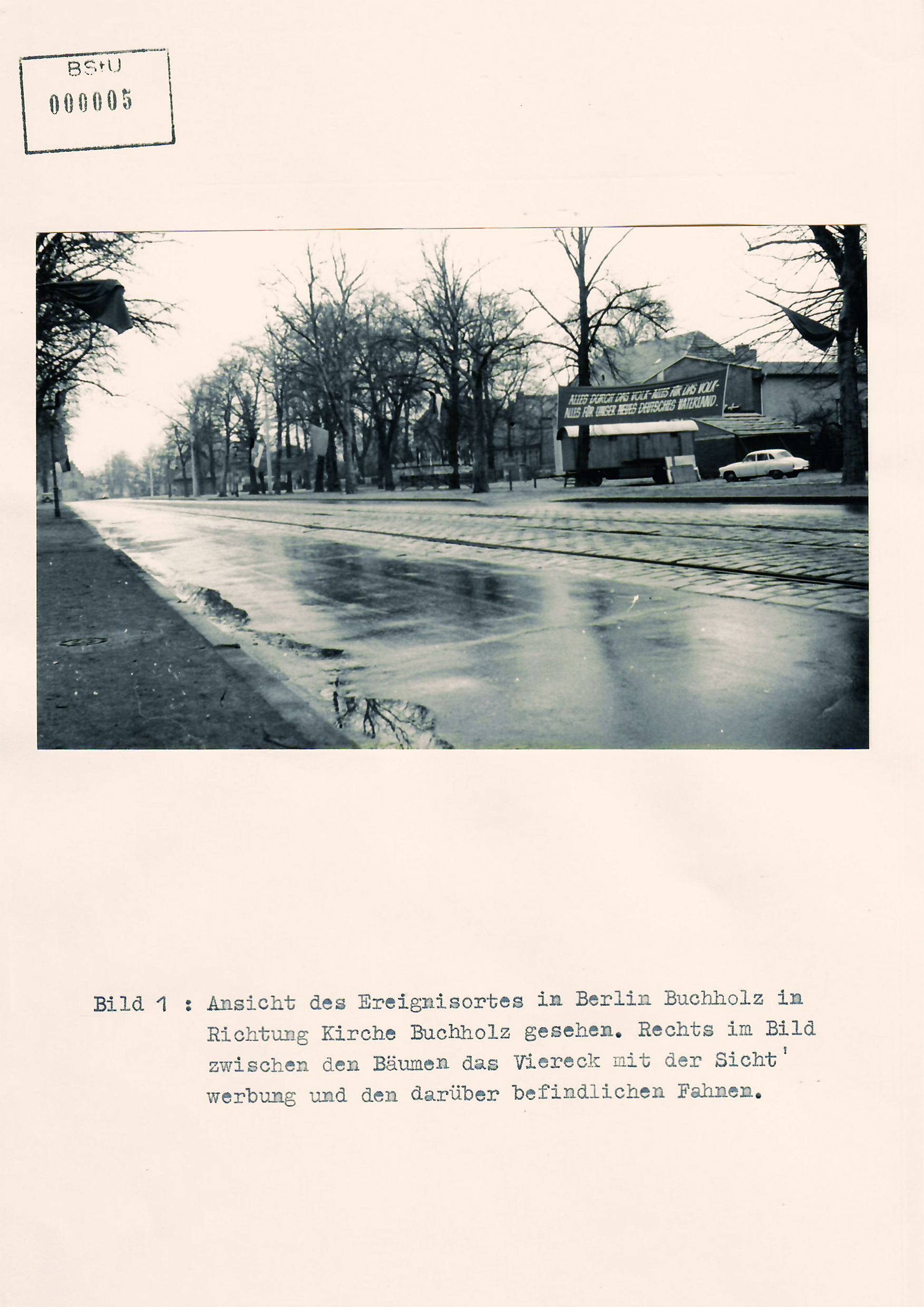 Am 8.10.1965 gegen 21.30 Uhr entwendete ein amerikanischer Besatzer (Insasse des BC–94) von einem Baum in der Hellersdorfer Straße, in Höhe des VEG Hellersdorf, eine FDJ-Fahne.