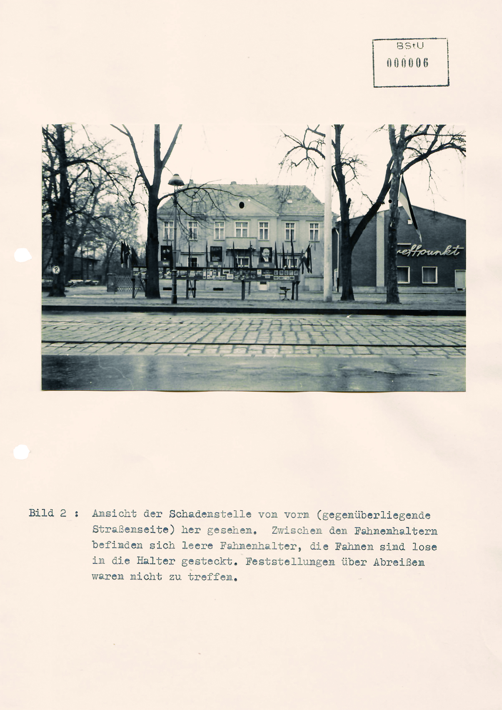 Am 20.4.1966 gegen 2.10 Uhr wurden durch die Insassen des amerikanischen Militärfahrzeuges BC–73 vom Zaun des VEB Trafo-Werk »Karl Liebknecht«, Werk II in Berlin-Lichtenberg, Köpenicker Chaussee 11–20, drei DDR-Staatsflaggen und eine rote Fahne abgerissen und entwendet. Eine weitere Fahne entwendeten die Besatzer vom Grundstück Köpenicker Chaussee 31.